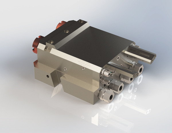 In the case of the cartridge injectors, the media connections are led outwards from the injector via the mould base. Both injector types are positioned in the mould parting line (easy servicing in assembly and disassembly). If the injectors are soiled, the sophisticated design (e.g. bore holes) allows for fast cleaning.